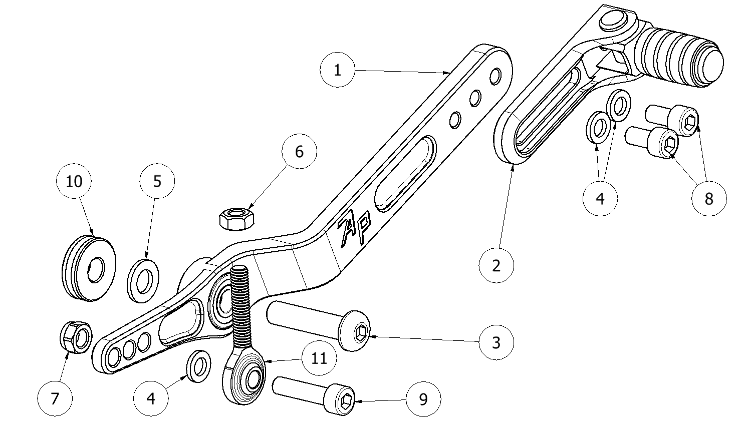 2 90111022B Shift Lever Slider Assembly w/Pedal, Engine Mounting, Black