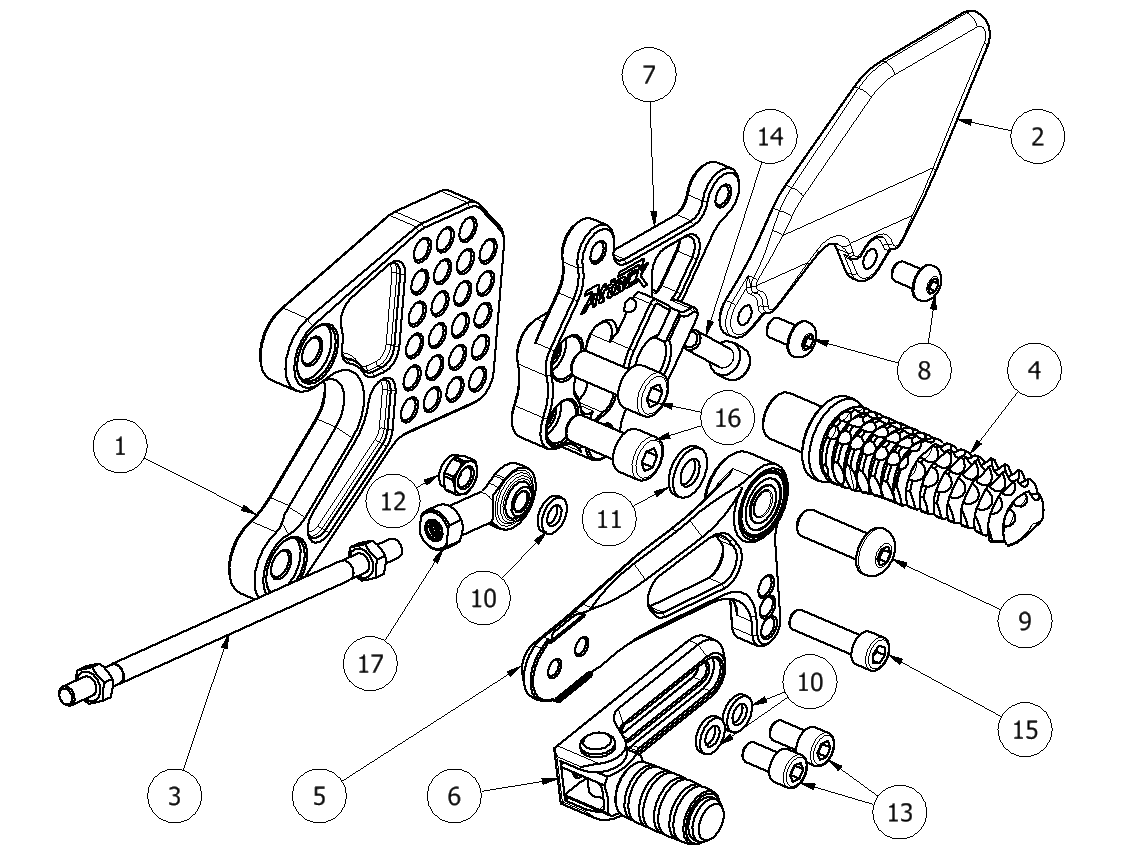 4 90110124B Foot Peg, Pinch -Type, Short (10mm Shorter Race Option), Black