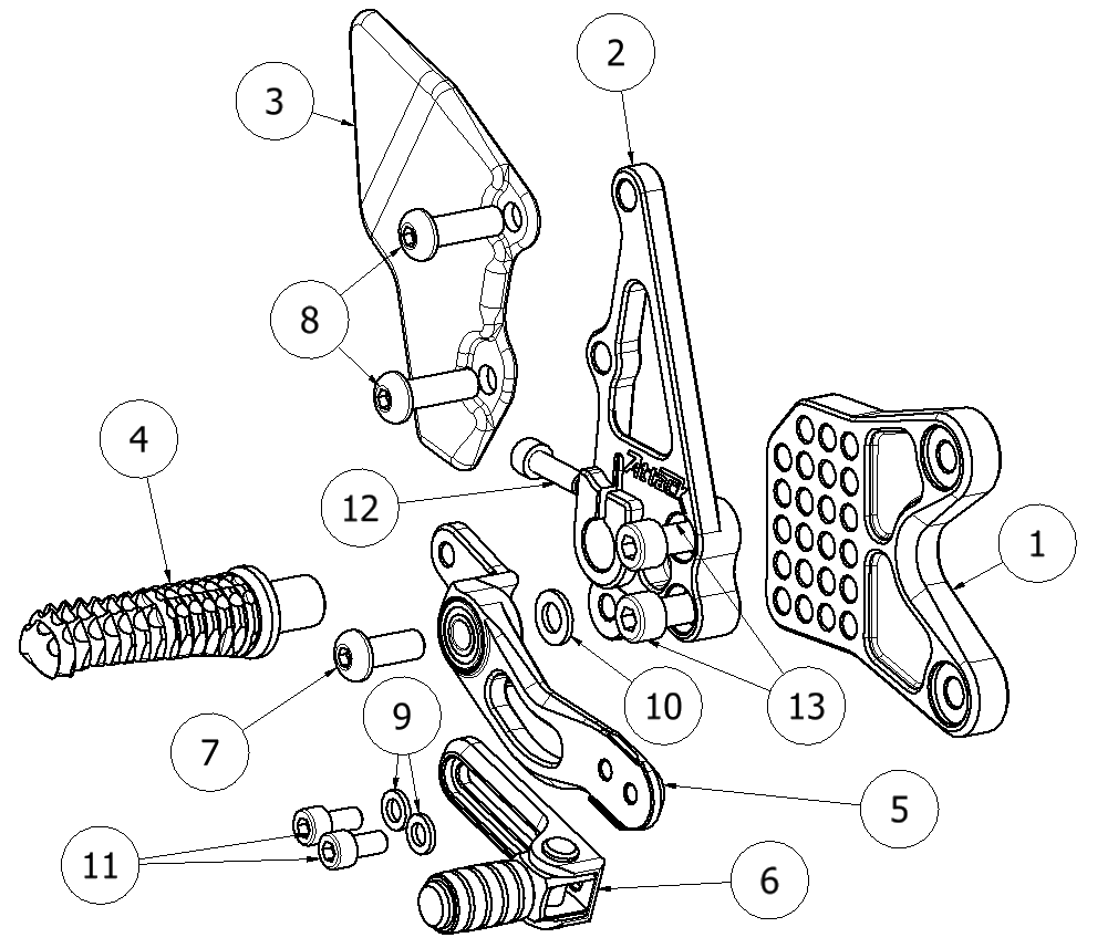 6 90111023G Brake Lever Slider Assembly w/Pedal, Peg Braket Mounting, Aero Hard