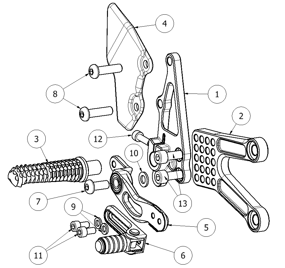 6 90111023G Brake Lever Slider Assembly w/Pedal, Peg Braket Mounting, Aero Hard