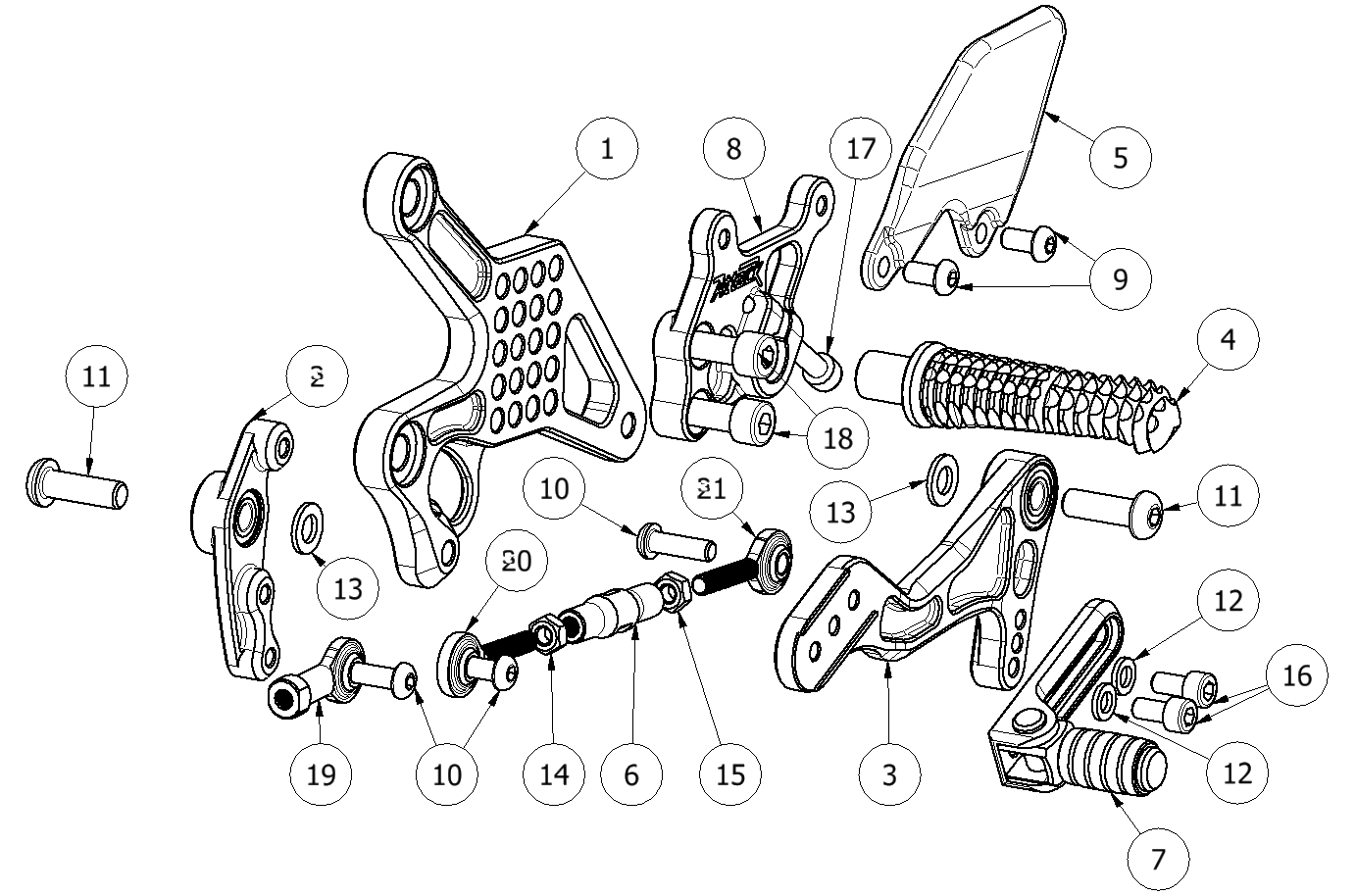 7 90111021B Shift Lever Slider Assembly w/Pedal, Peg Bracket Mounting, Black