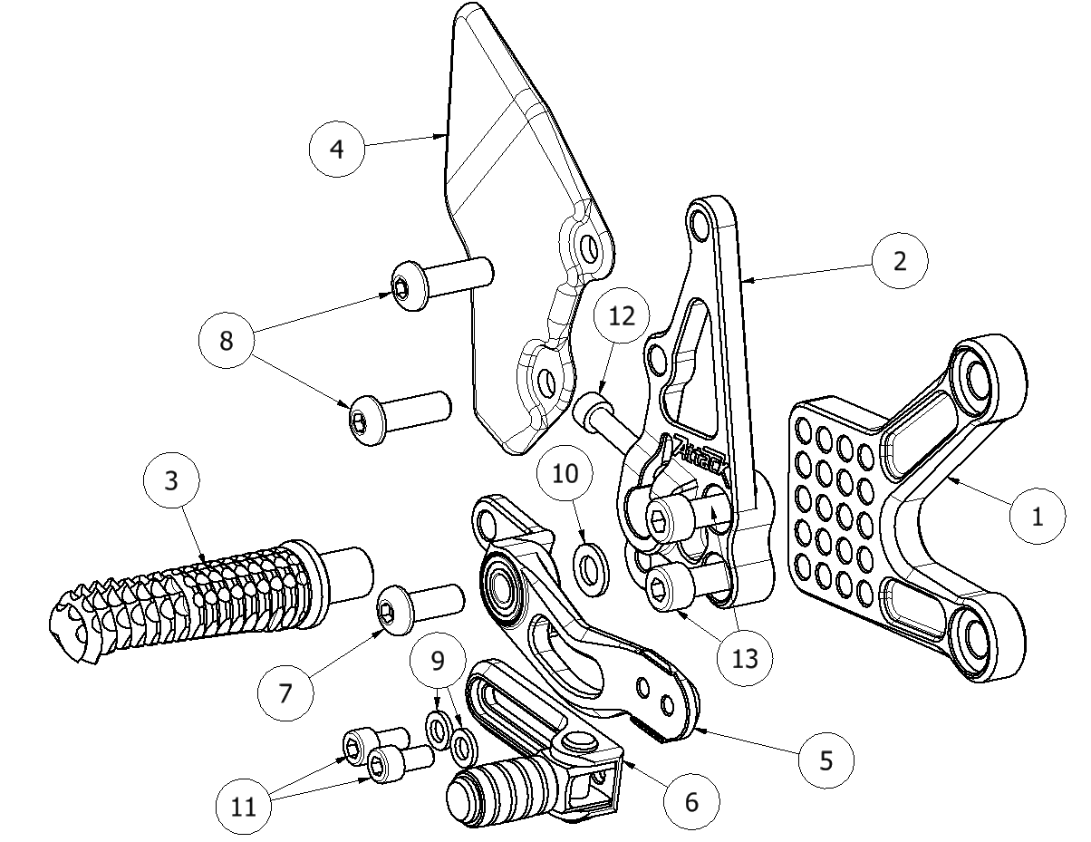 6 90111023G Brake Lever Slider Assembly w/Pedal, Peg Braket Mounting, Aero Hard