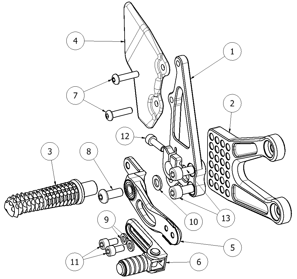 6 90111023B Brake Lever Slider Assembly w/Pedal, Peg Braket Mounting, Black