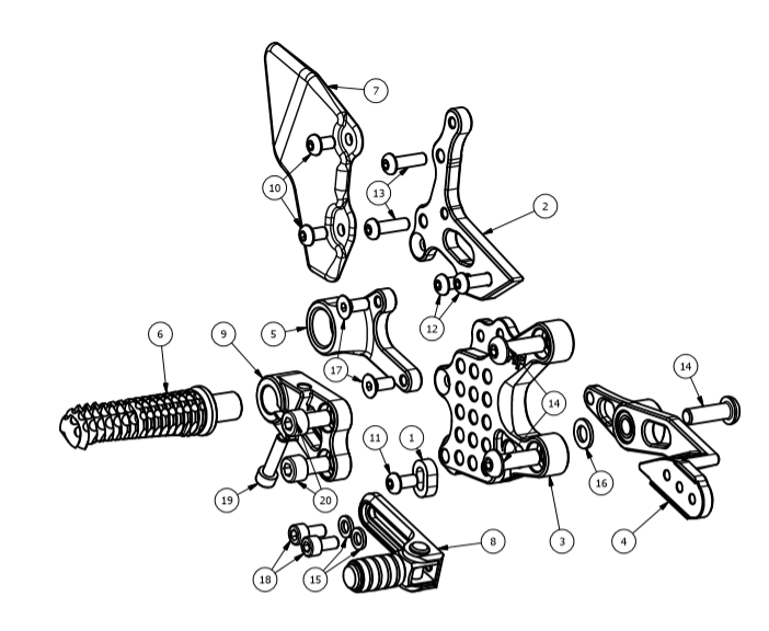 8 90111023S Brake Lever Slider Assembly w/Pedal, Peg Braket Mounting, Clear