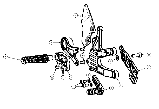 6 90111023B Brake Lever Slider Assembly w/Pedal, Peg Braket Mounting, Black