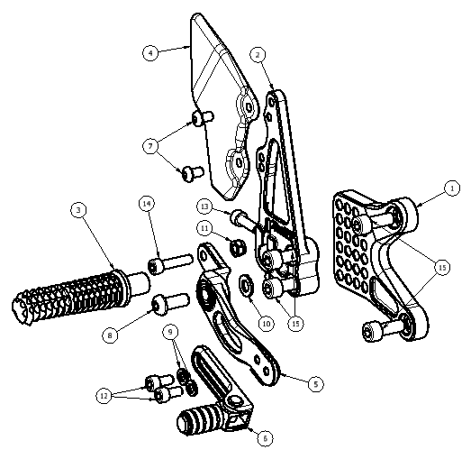 6 90111023G Brake Lever Slider Assembly w/Pedal, Peg Braket Mounting, Aero Hard